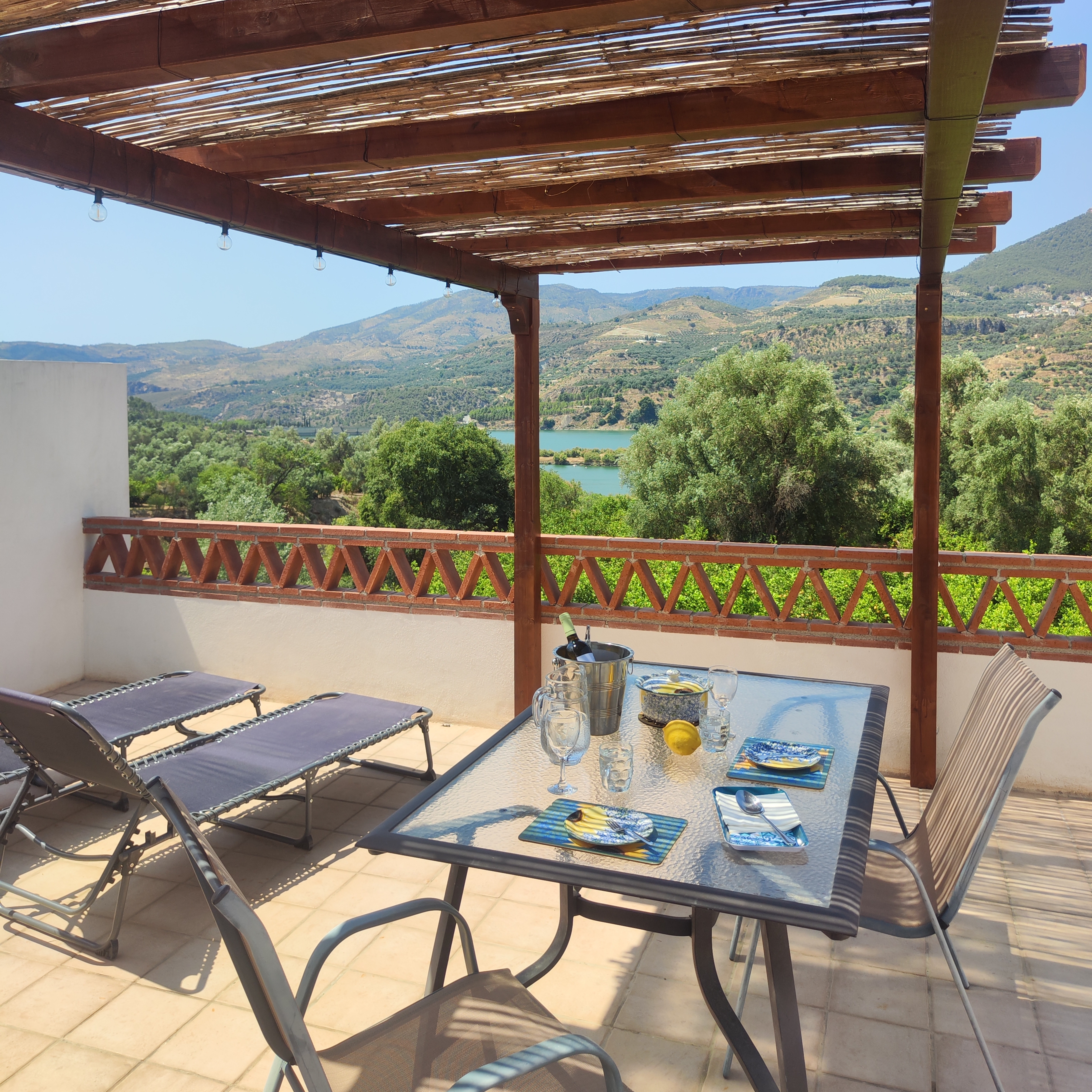10 minuten lopen naar het Meer van Béznar met strandbar, zwemwater en watersport (suppen, kajak, zeilen, surfen, waterfietsen) of een wandeling door citrusboomgaarden rond het meer.